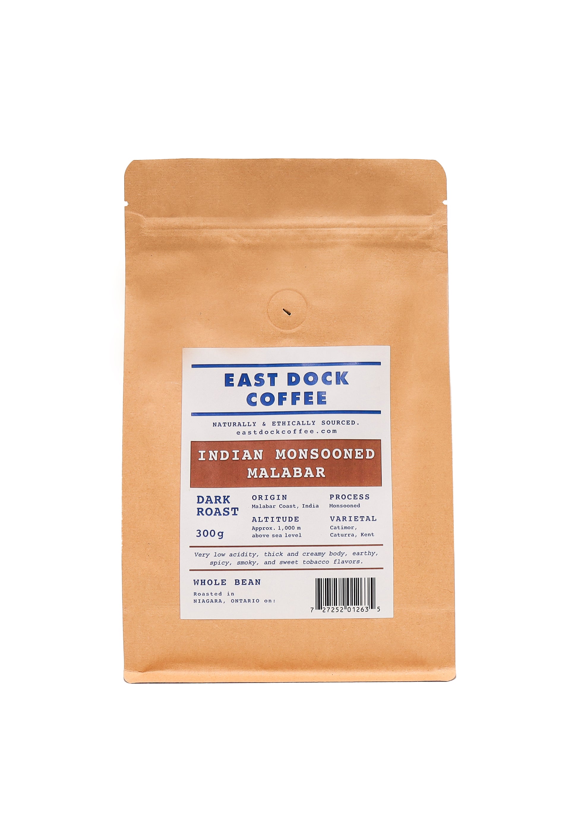 Experience the bold, exotic character of our Indian Monsooned Malabar, a truly unique coffee aged by the monsoon winds of India’s Malabar Coast. This rare process gives the beans their signature golden hue and smooth, mellow profile.